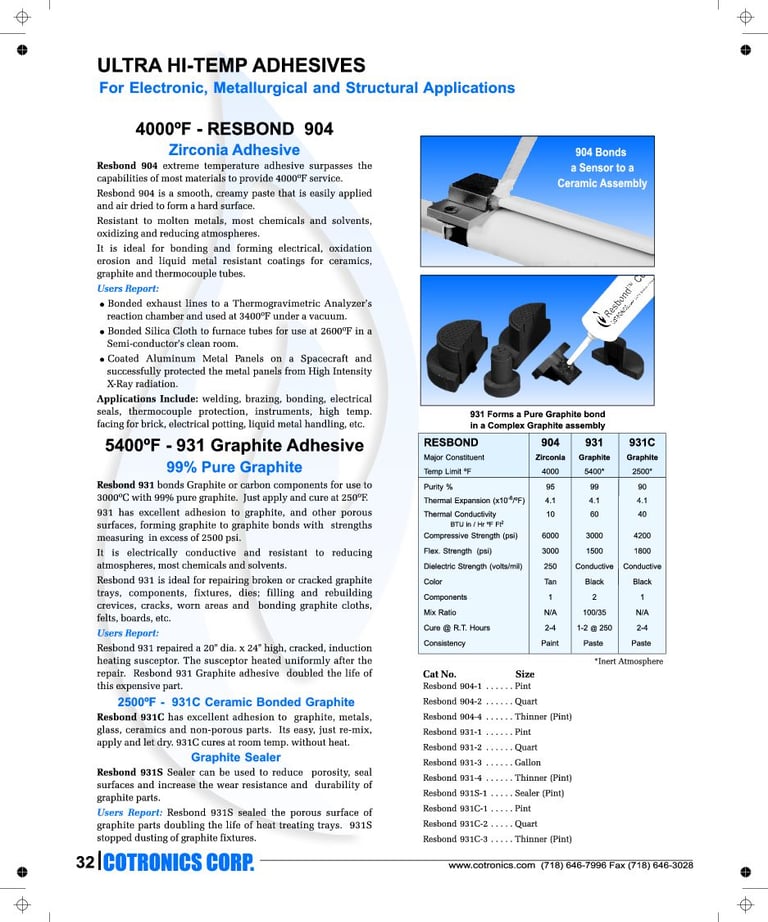 Resbond 4000 °F. Adesivo Zirconia Ultra High Temperature.